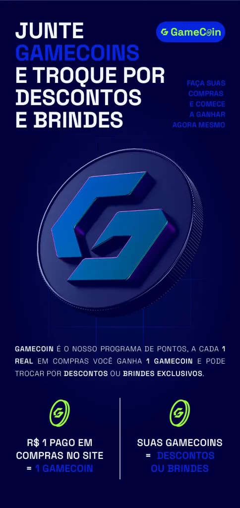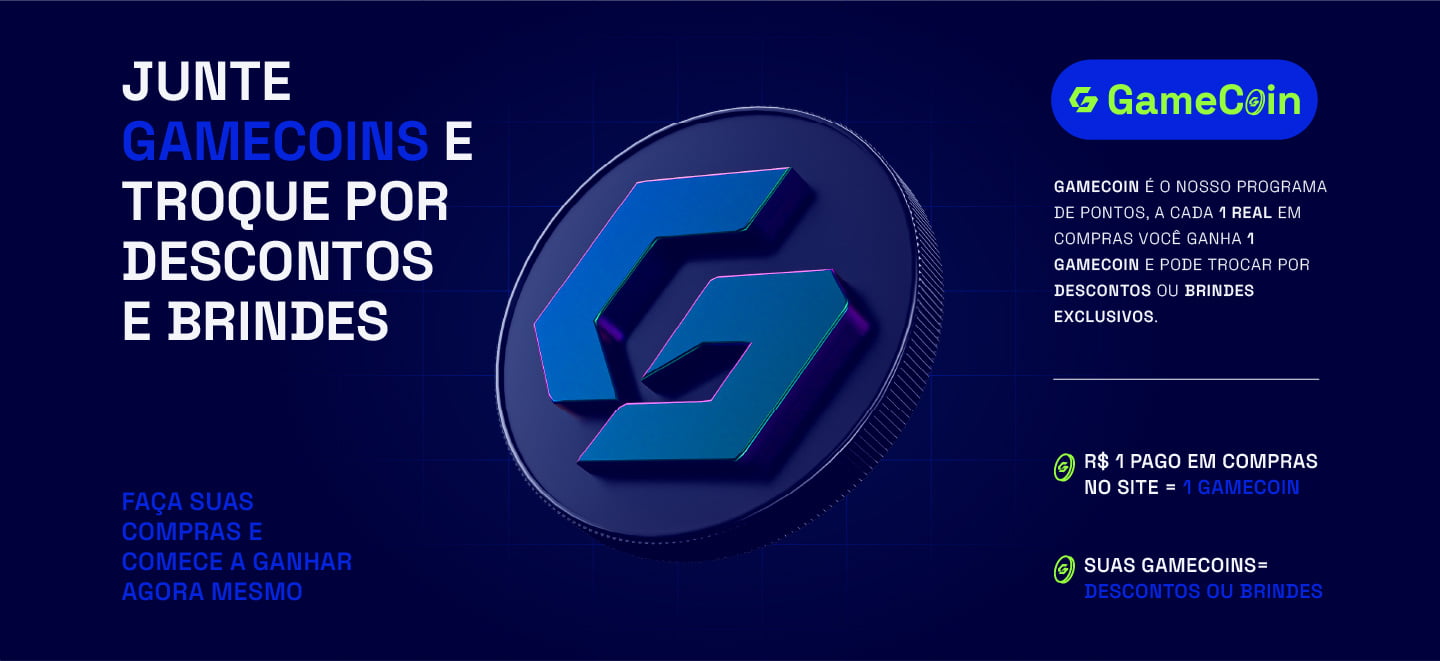 A cada R$ 1 pago na compra de nossos produtos no site, você ganha 1 Gamecoin.